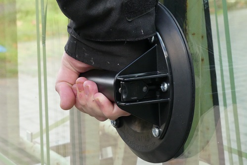 Zorg dat de zuiger én het glas schoon zijn van vuil, stof en vettigheid, maar ook van vocht. Zet de zuiger op het glas en pomp de zuiger met het handpompje aan de zijkant vacuüm. Zit de hendel er helemaal in, dan kunt u gaan tillen. U draagt de zuiger zo dat uw duim op het pompje zit.