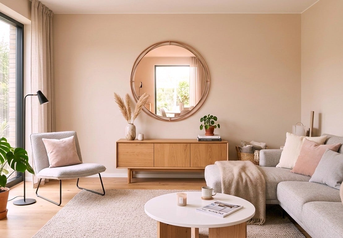 De rose kleur geeft aan de ruimte een geheel eigen zachte sfeer. Deze kleur spiegel past perfect bij een licht interieur met rose assecoires, zoals rose kussens.